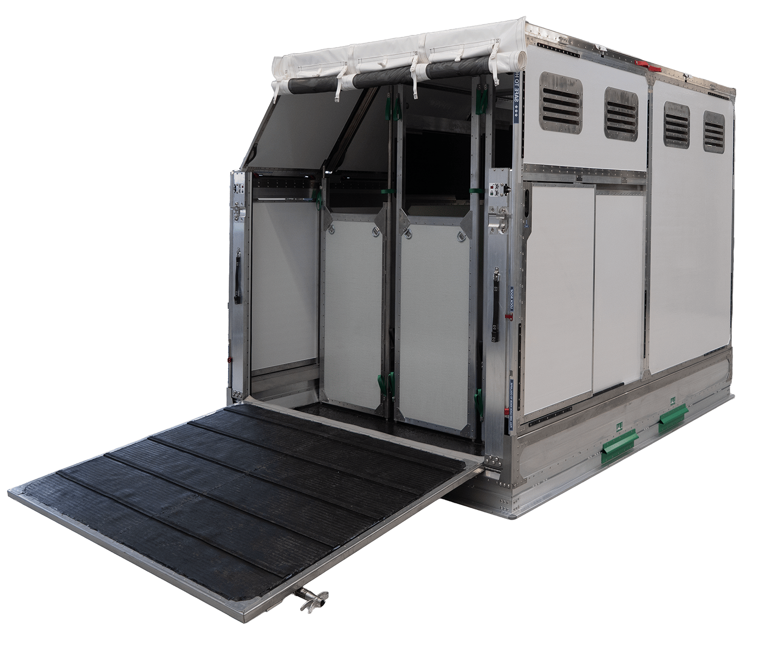 From ample floor space to adjustable partitions, this stall is designed with horse, handler and sustainability in mind. It fits a wide range of wide-body aircraft, can be positioned left (HML) or right (HMR) in the cargo hold, and folds into stackable units for return flights.